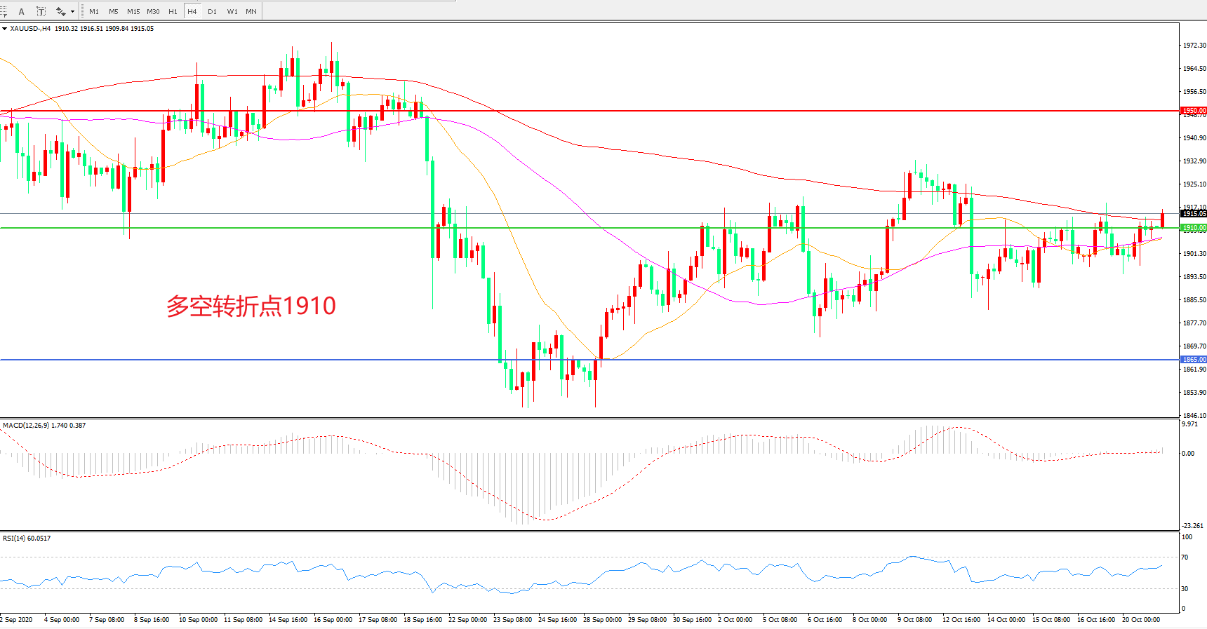 多空转折点:1910.00