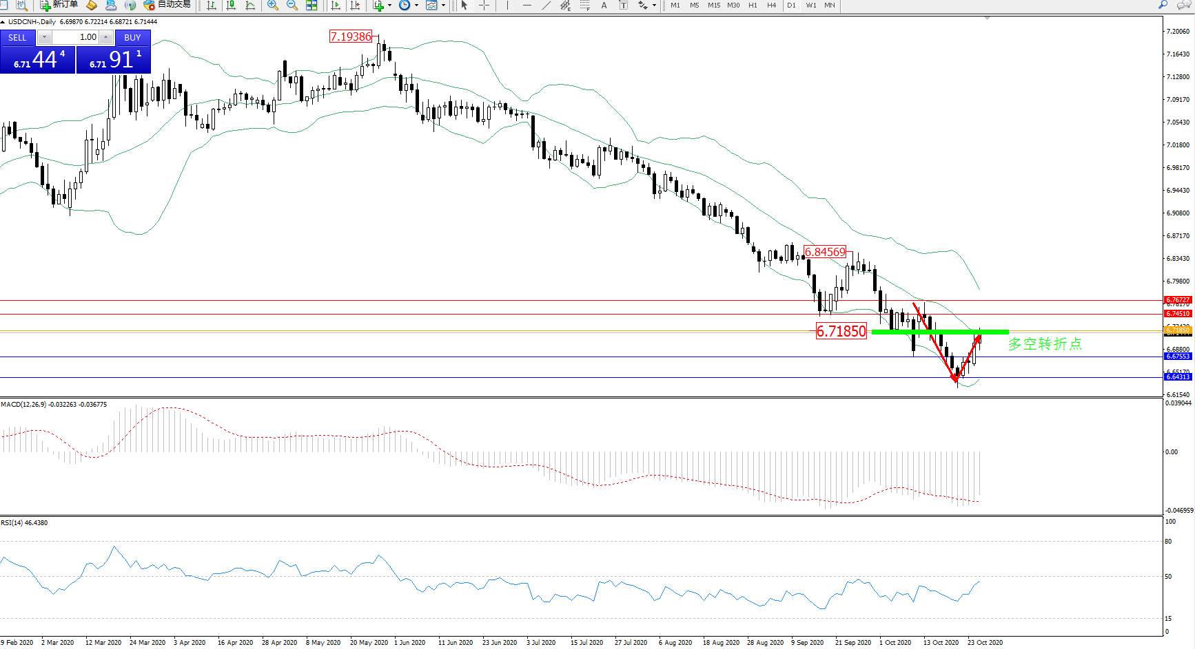 交易策略:6.71850下方看跌,目标6.67553、6.64313
