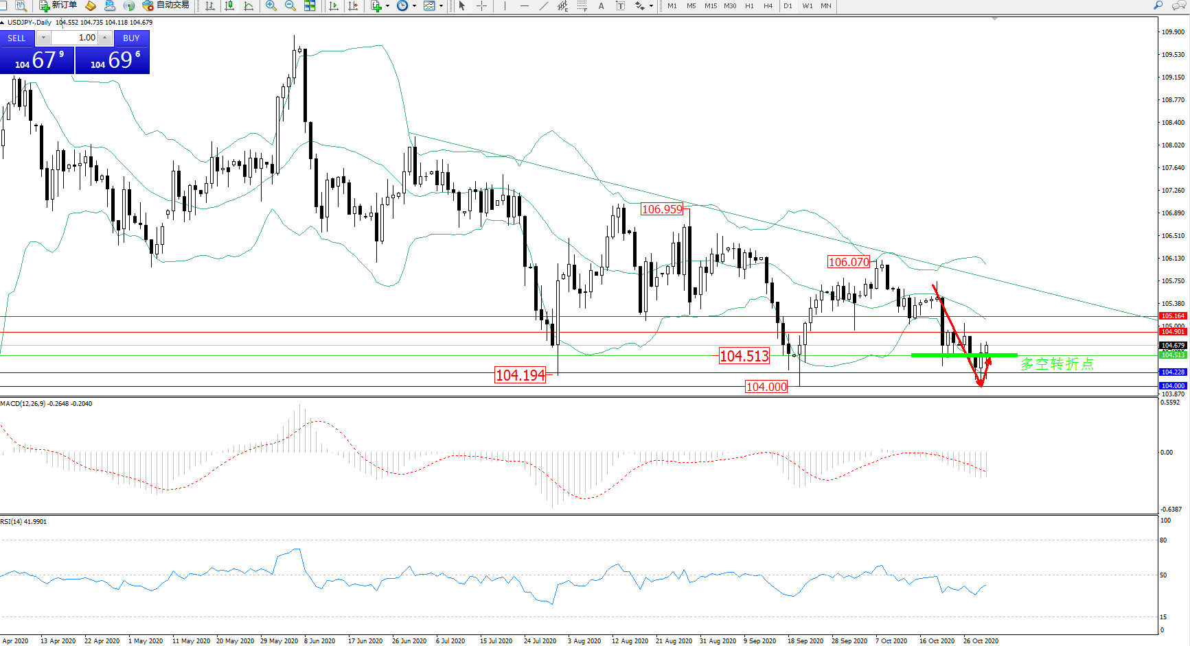 备选策略:104.513下方看跌,目标104.228、104.000