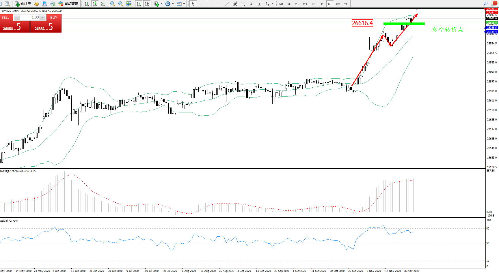 交易策略:26616上方看涨,目标27144、27325