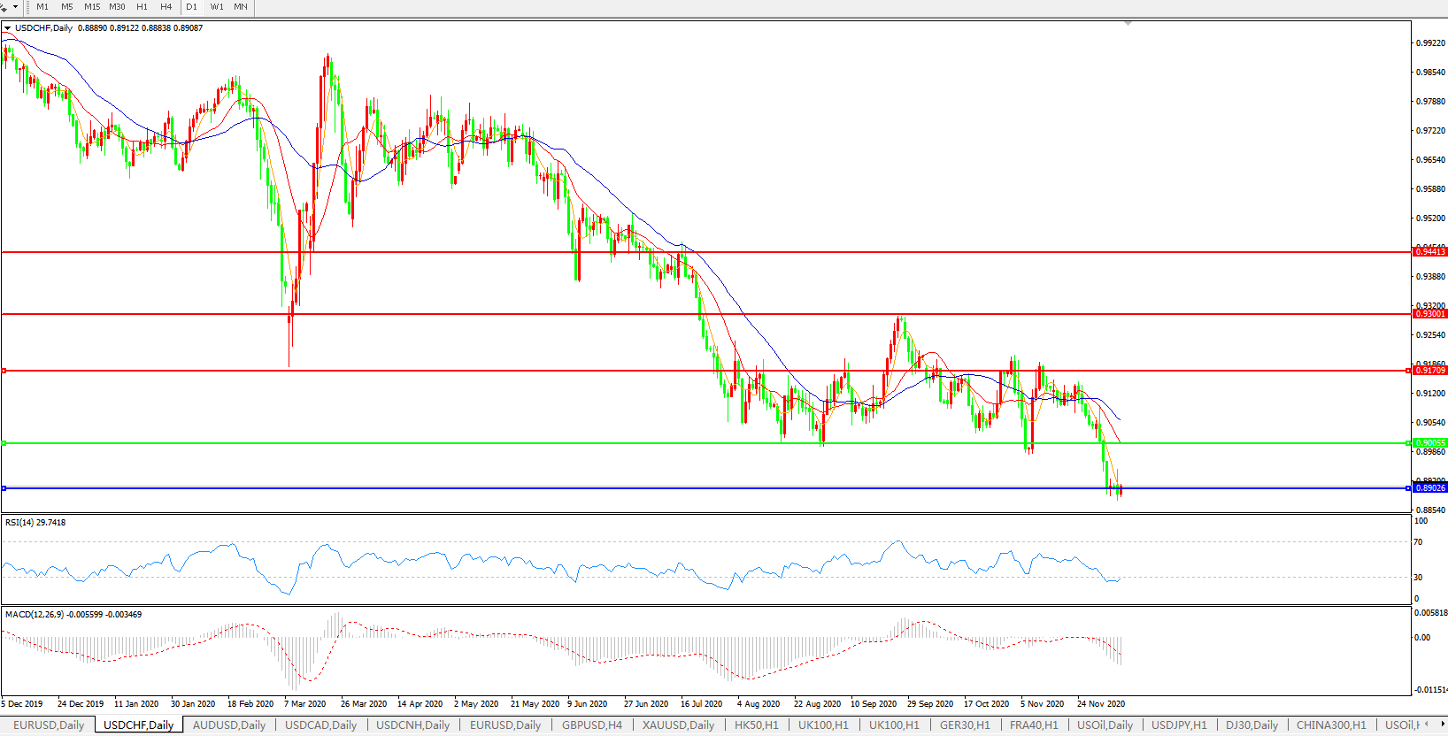 三菱东京日联银行仍认为美元兑瑞郎在0.85获得支撑前,将有望维持看跌立场,拜登胜选总统支持美元疲弱前景,美国就业疲弱,美联储将加大宽松政策以支持经济复苏,同时美联储料将向国会施加更大的压力,要求国会在提供更多财政刺激措施方面达成两党协议;货币贬值出现可持续反转还为时过早,特别是如果通胀上升,而宽松货币政策仍然有效的话,除了金价,瑞郎是货币贬值交易的主要受益者之一。