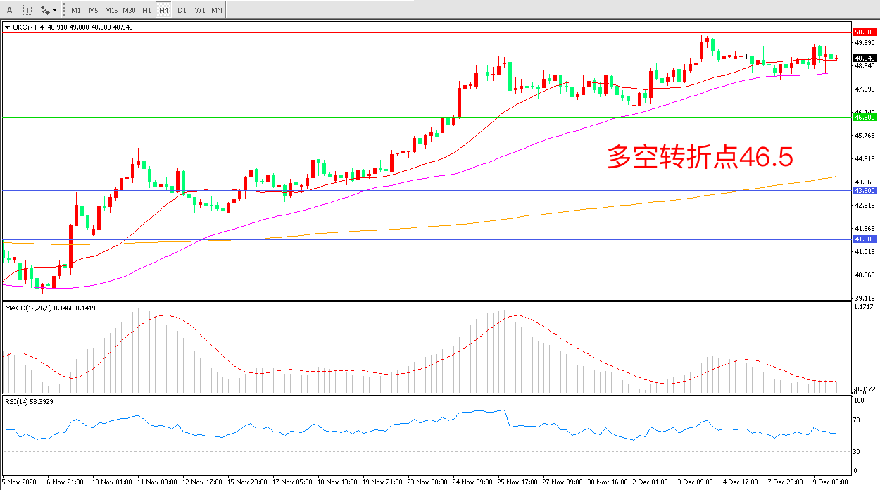 交易策略:  在46.50之上看涨,目标50.00      53.00