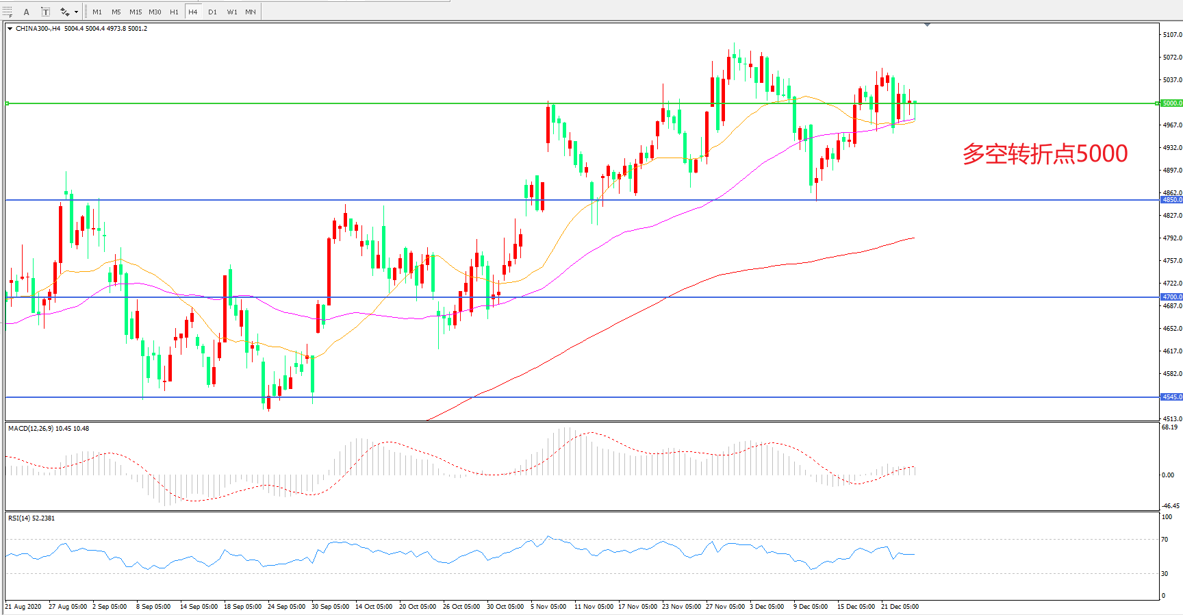 交易策略: 在5000.00之上看涨,目标5080.00       5130.00