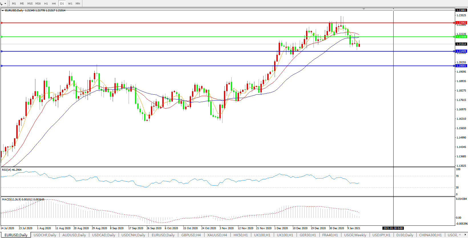 欧元兑美元EURUSD 日线图: