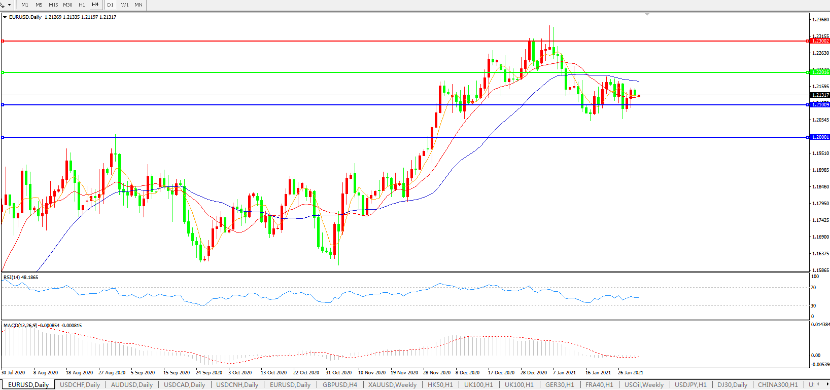 支撑位:1.2100 1.2000