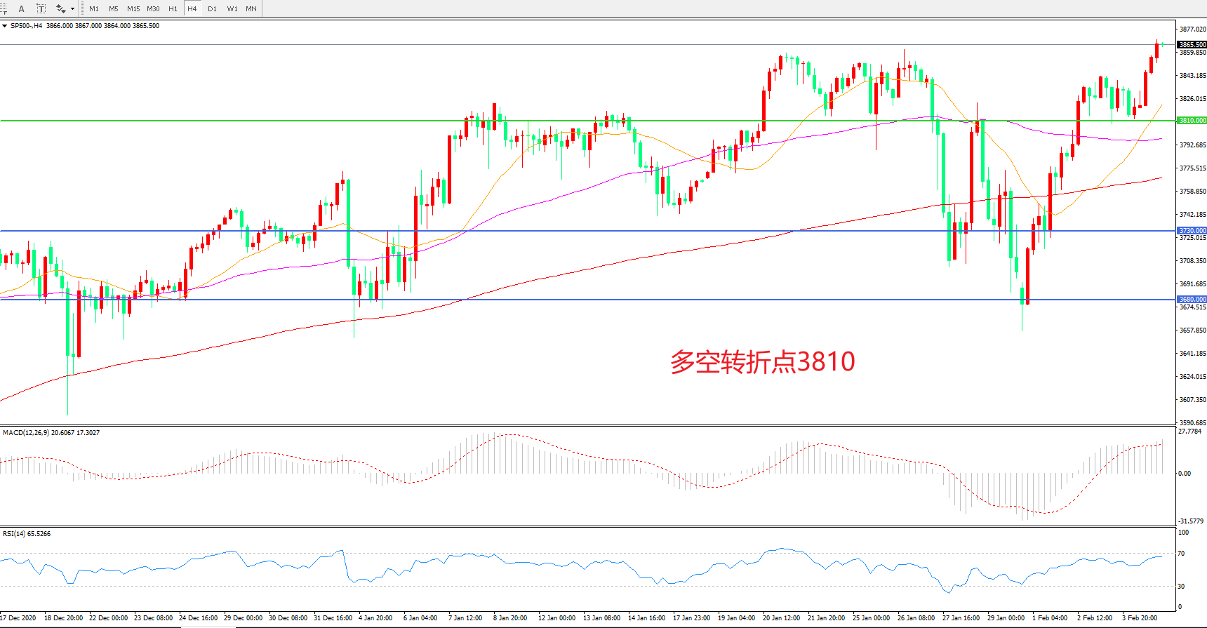 多空转折点:3810.00