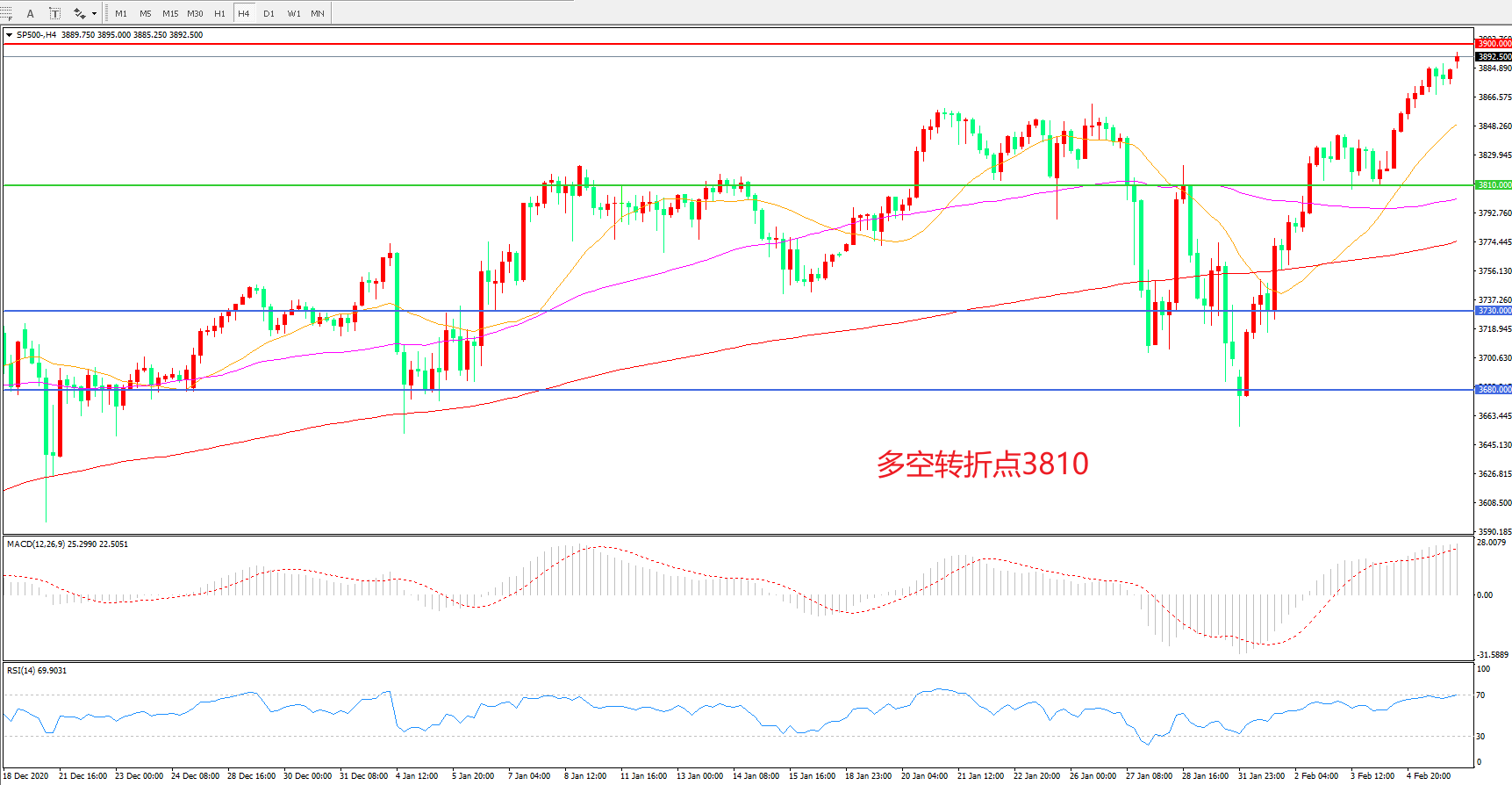 多空转折点:3810.00