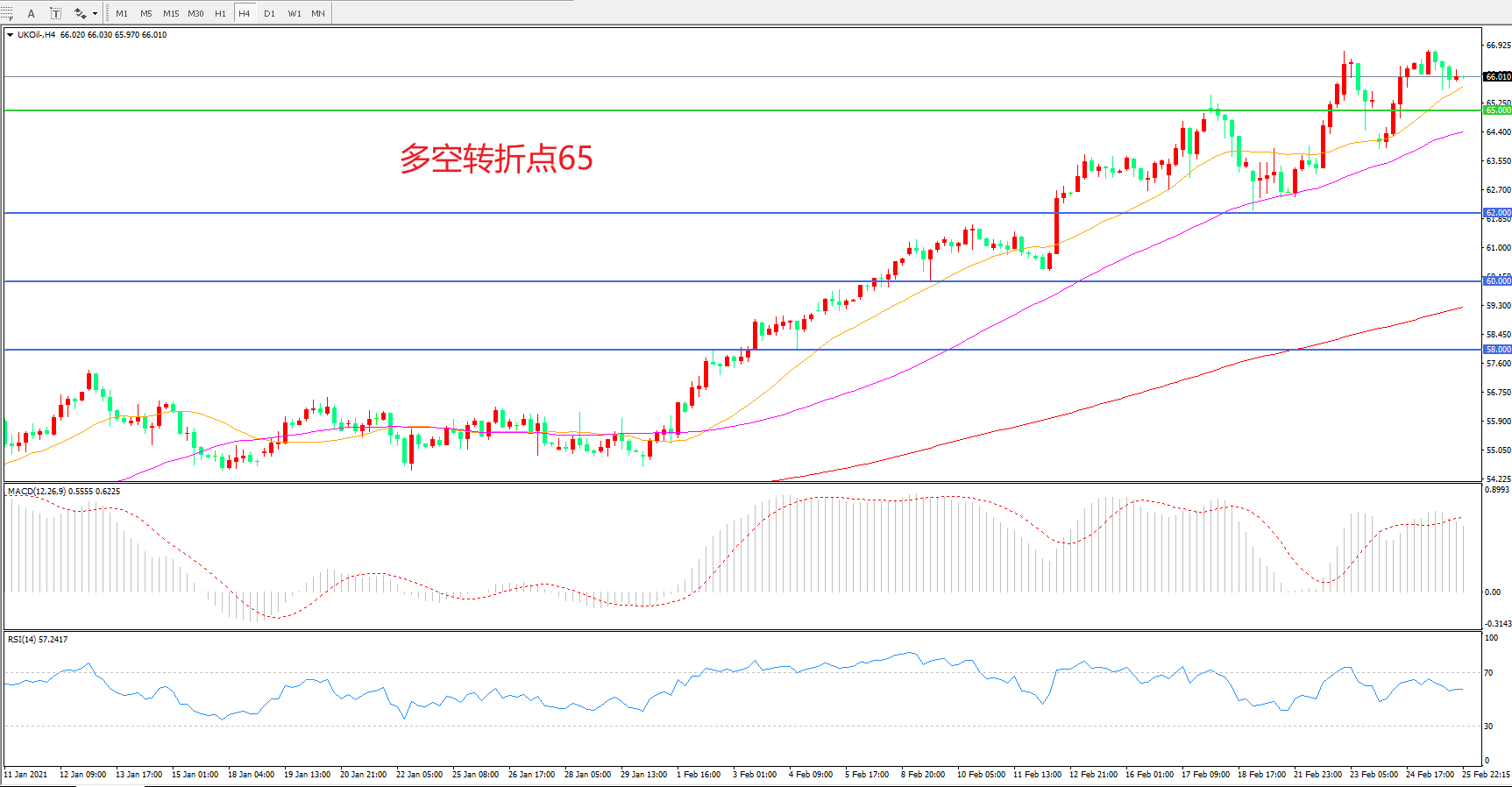 多空转折点:65.00