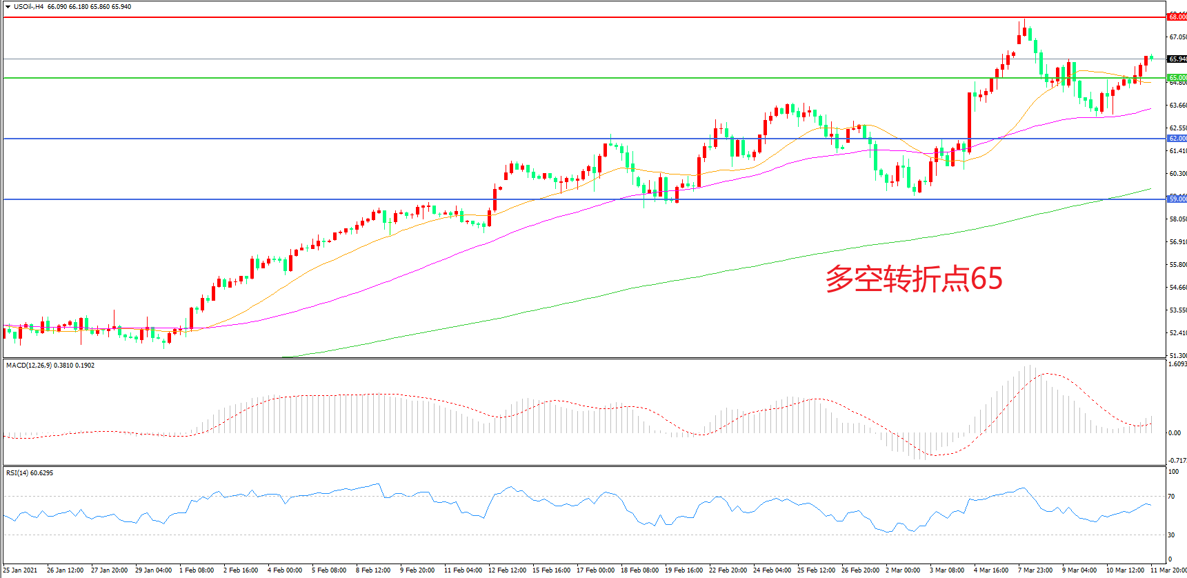 交易策略:在65.00之上看涨,目标68.00 72.00