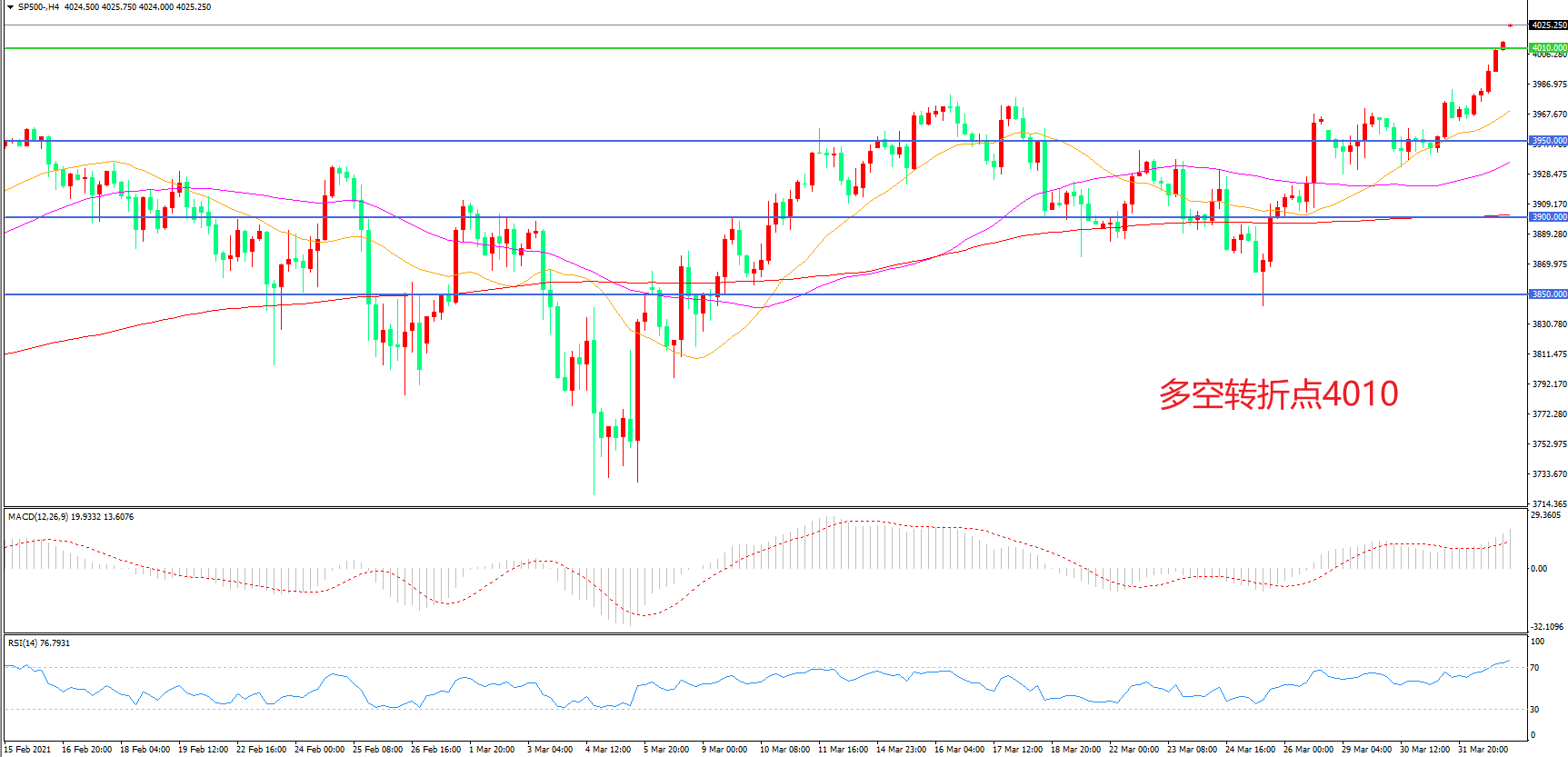 多空转折点:4010.00