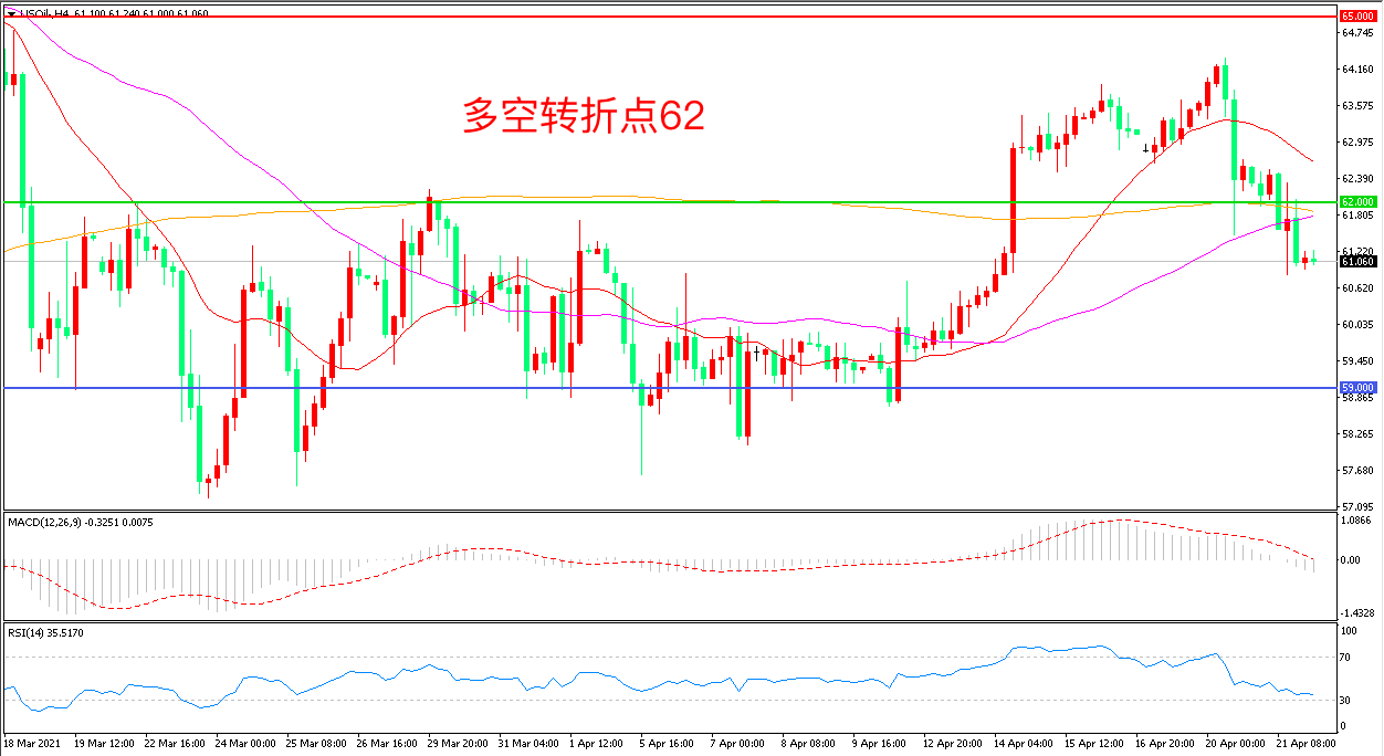 交易策略:在62.00之下看跌,目标59.00    55.00