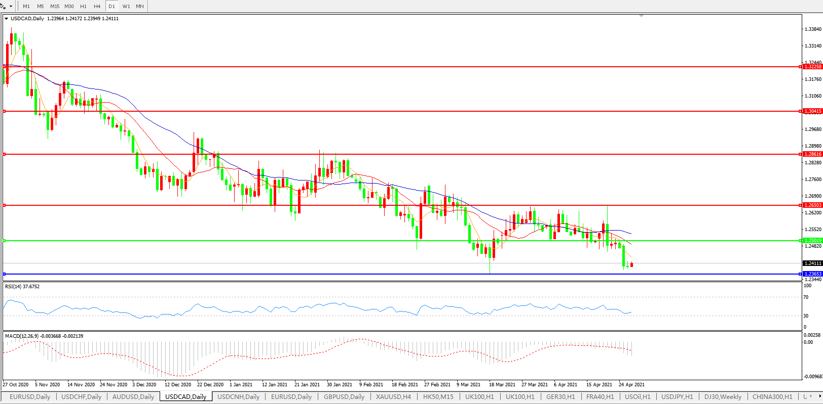 美元兑加元USDCAD 日线图: