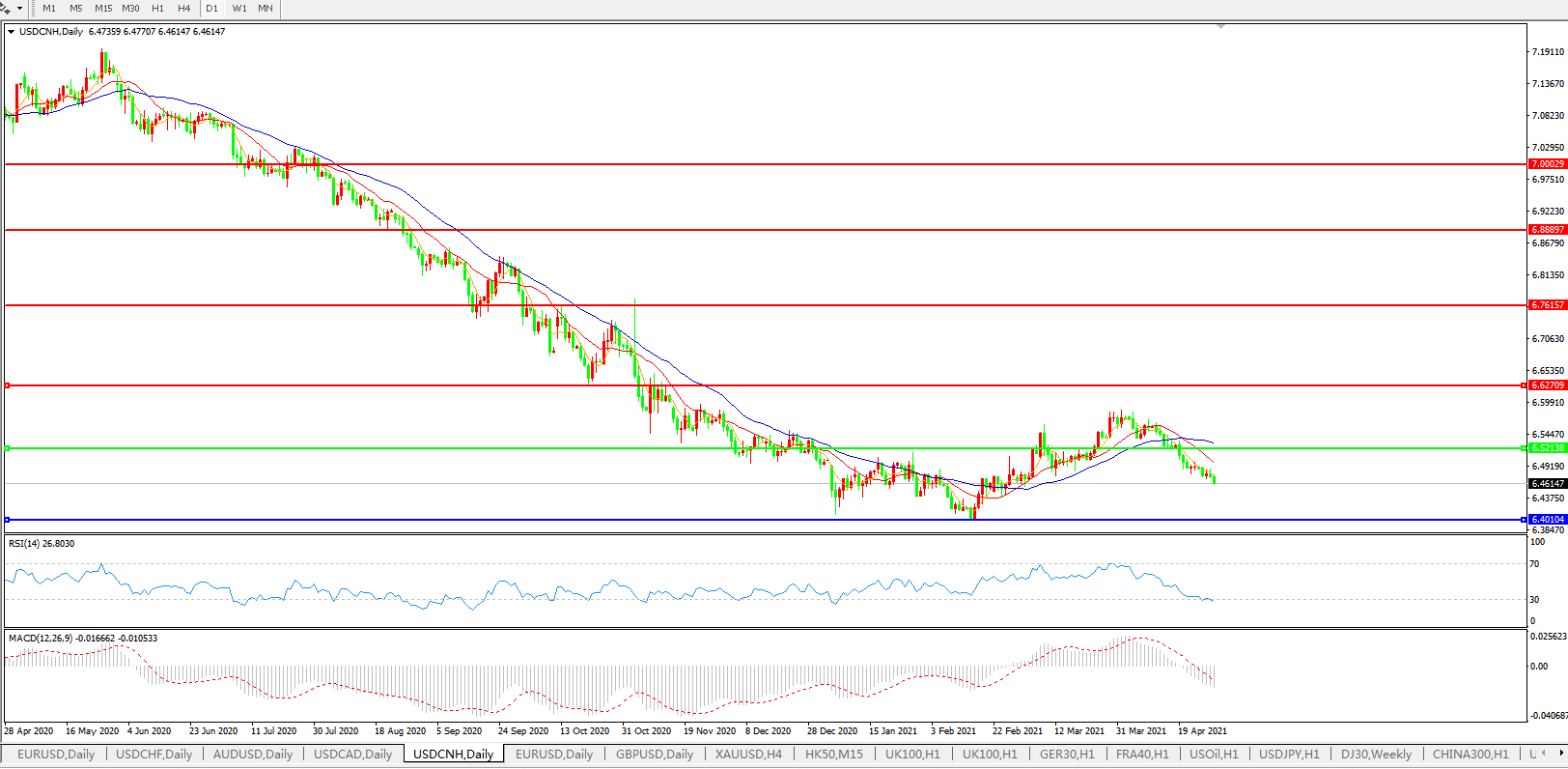 美元兑人民币USDCNH 日线图: