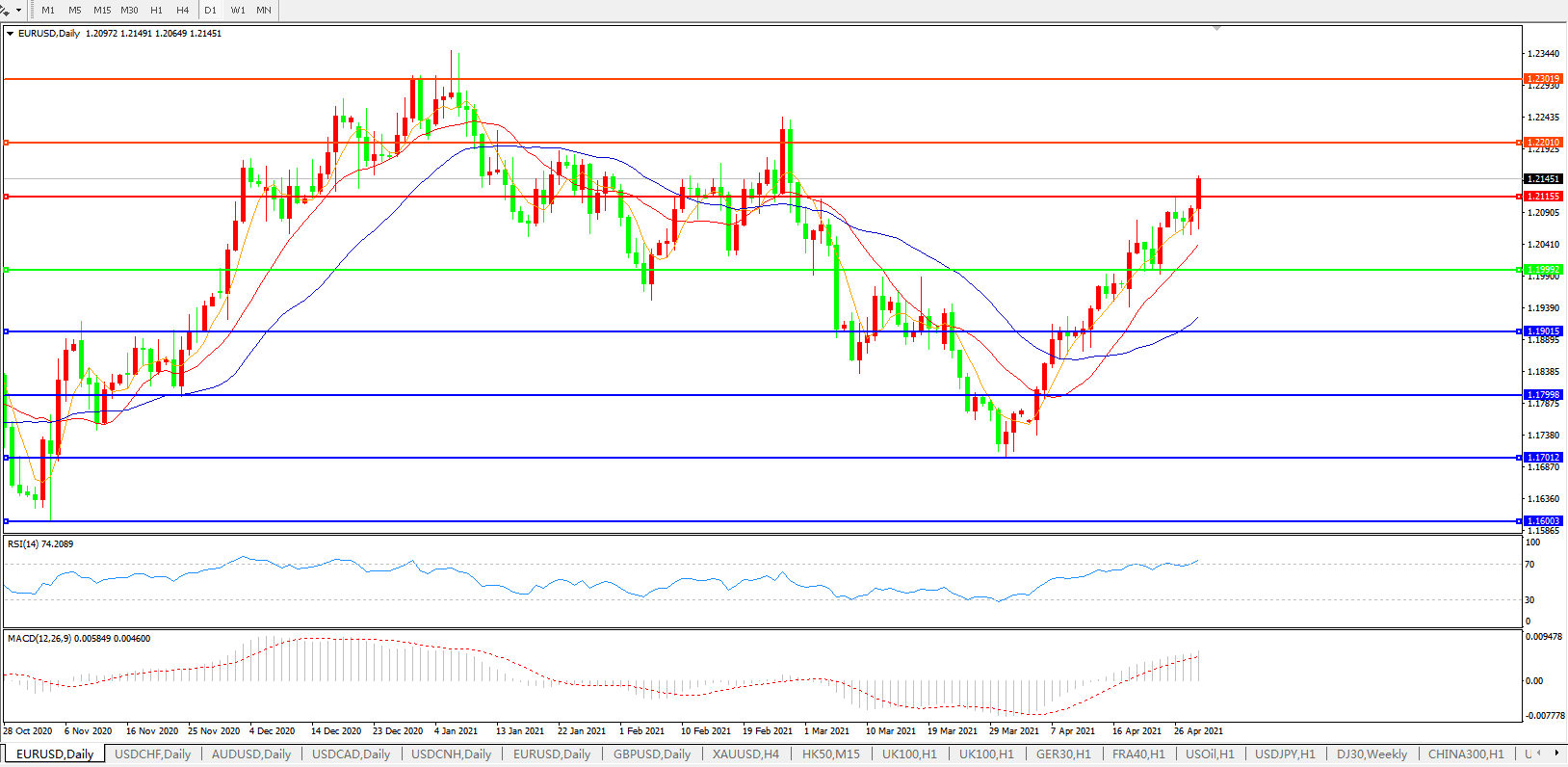 欧元兑美元EURUSD 日线图:
