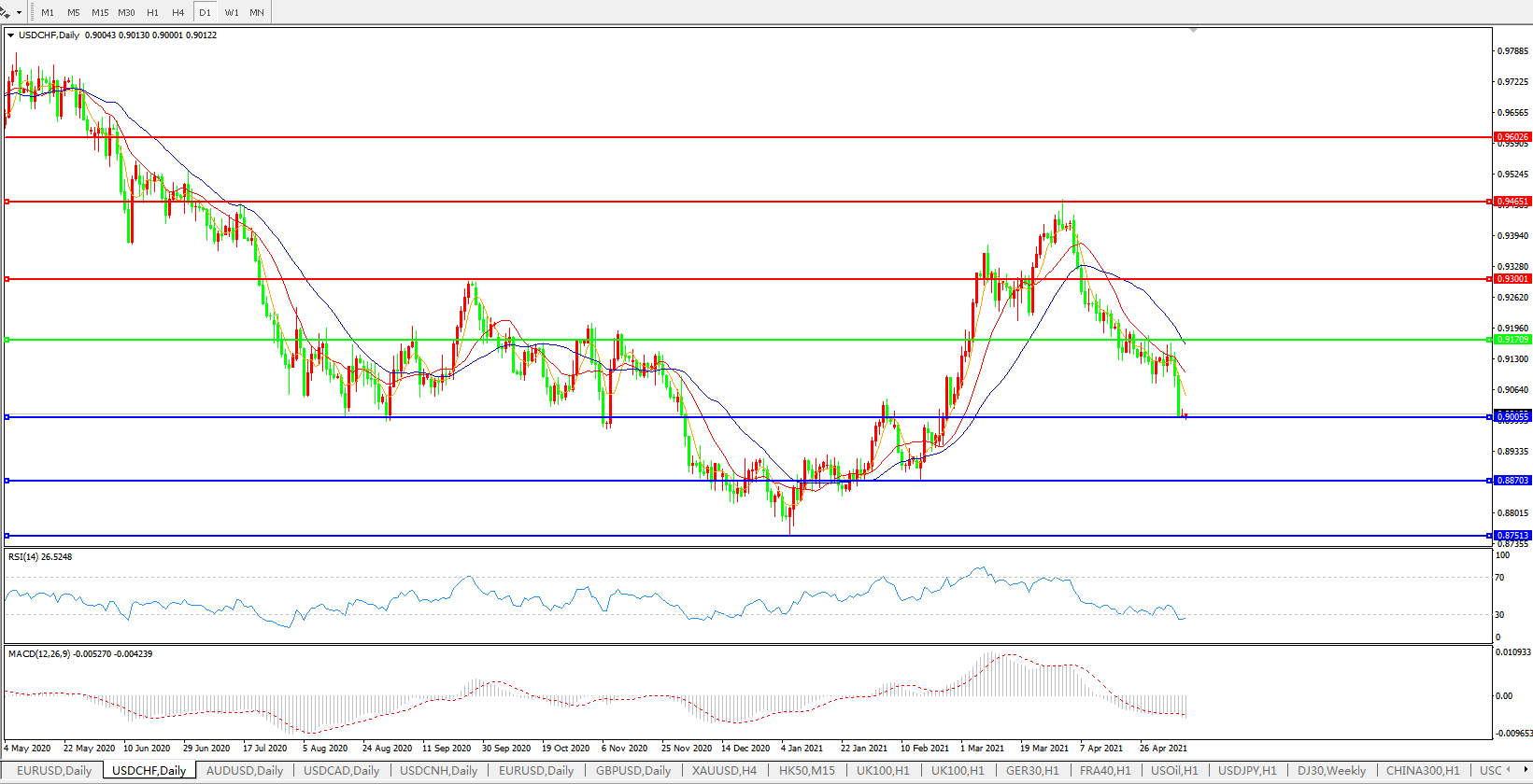 美元兑瑞郎USDCHF 日线图: