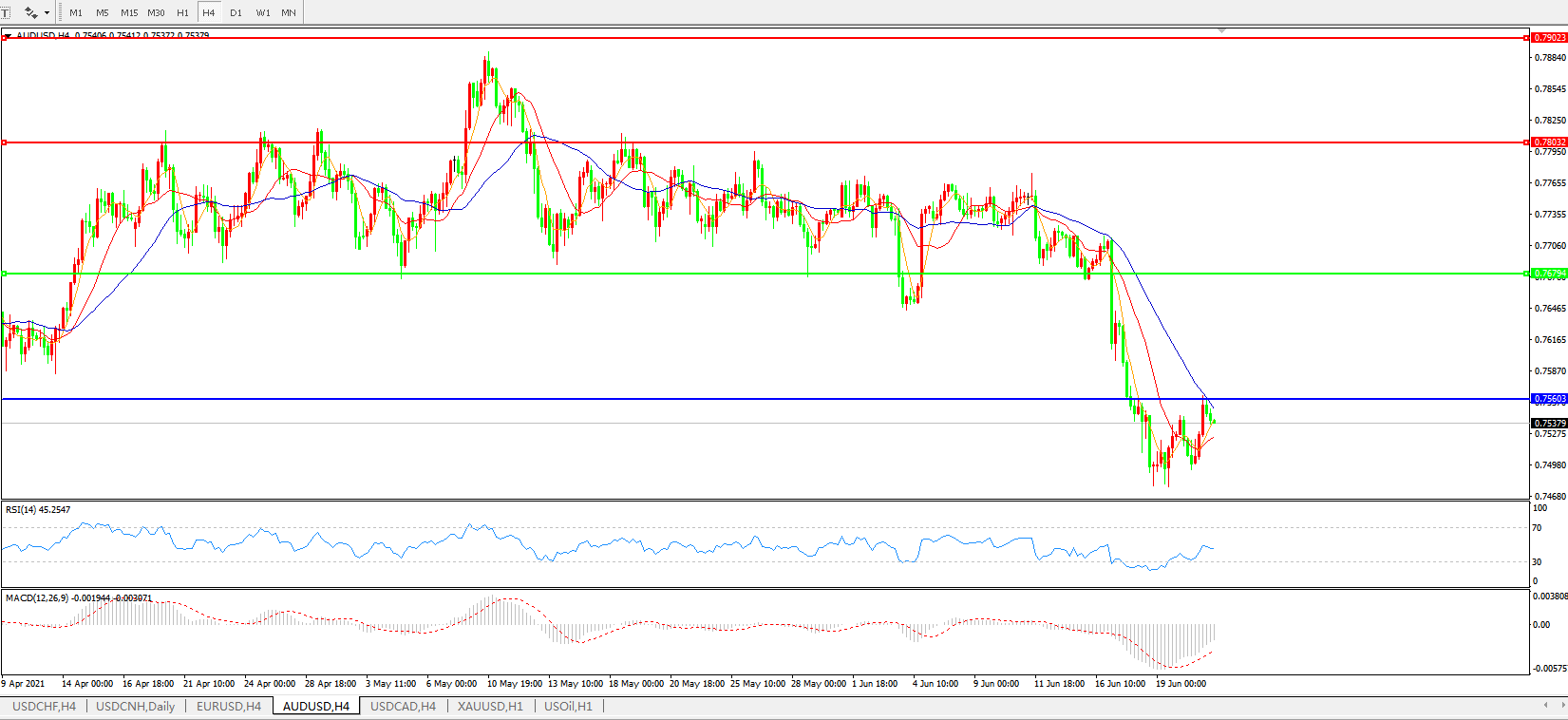 AUDUSD 4小时图:
