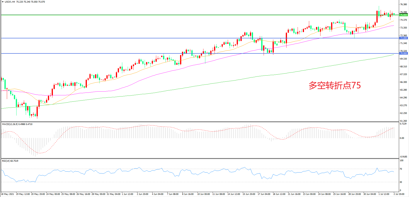 多空转折点:75.00