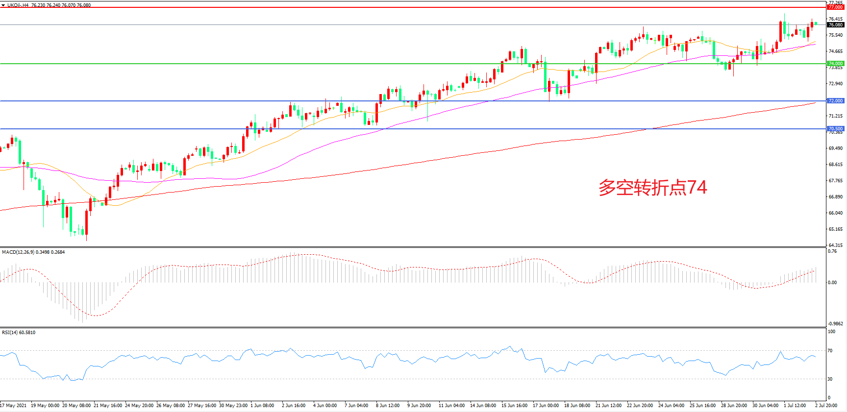 多空转折点:74.00
