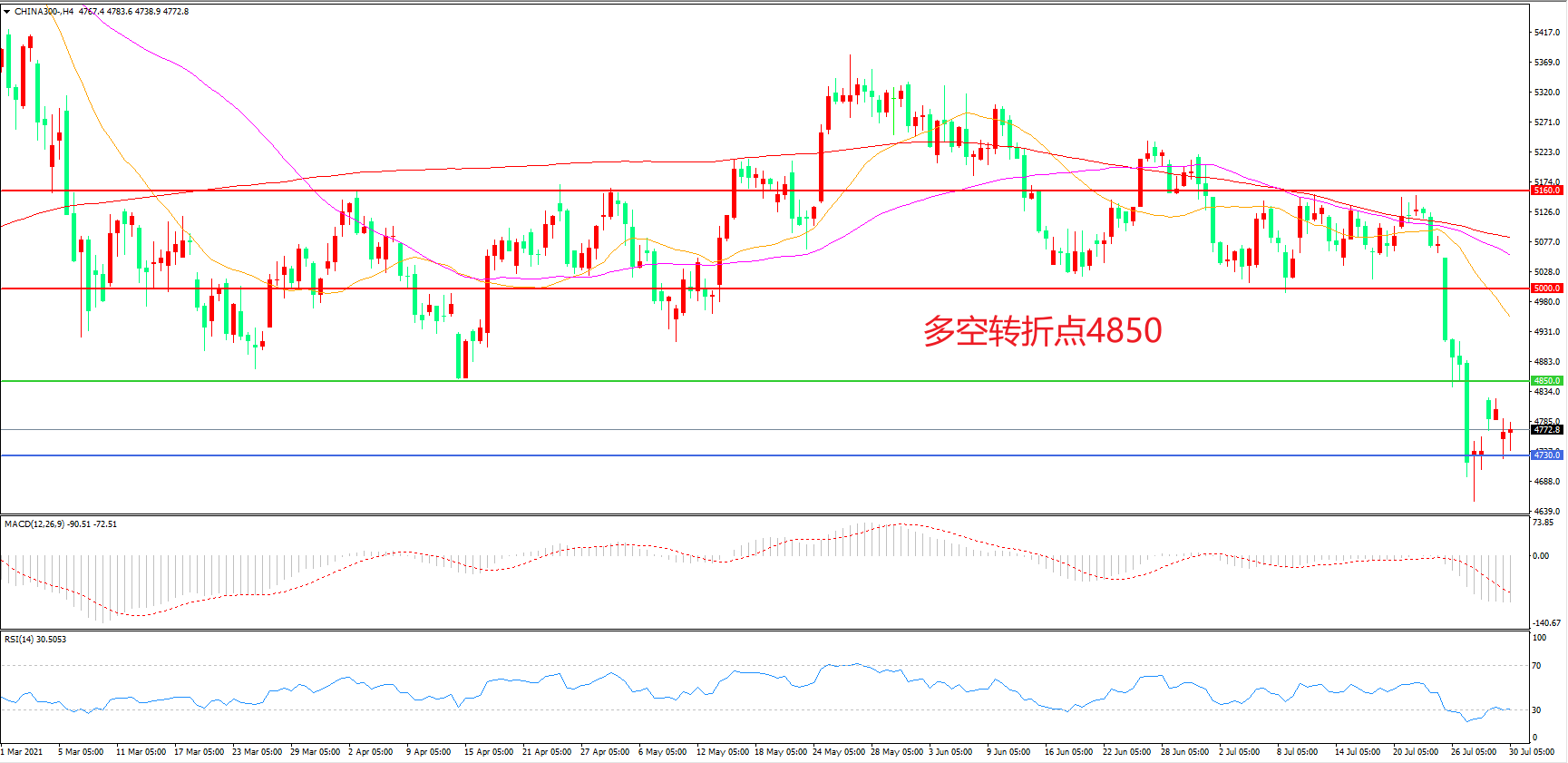 多空转折点:4850.00