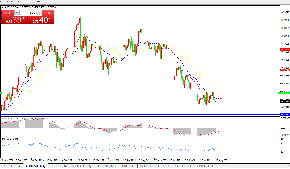 交易策略:0.7400下方看跌,目标0.7240、0.7080