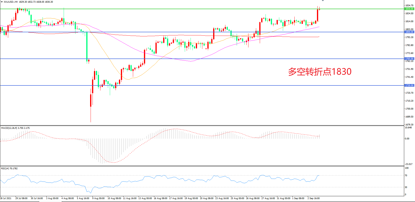 交易策略:在1830.00之上看涨,目标1865.00            1890.00