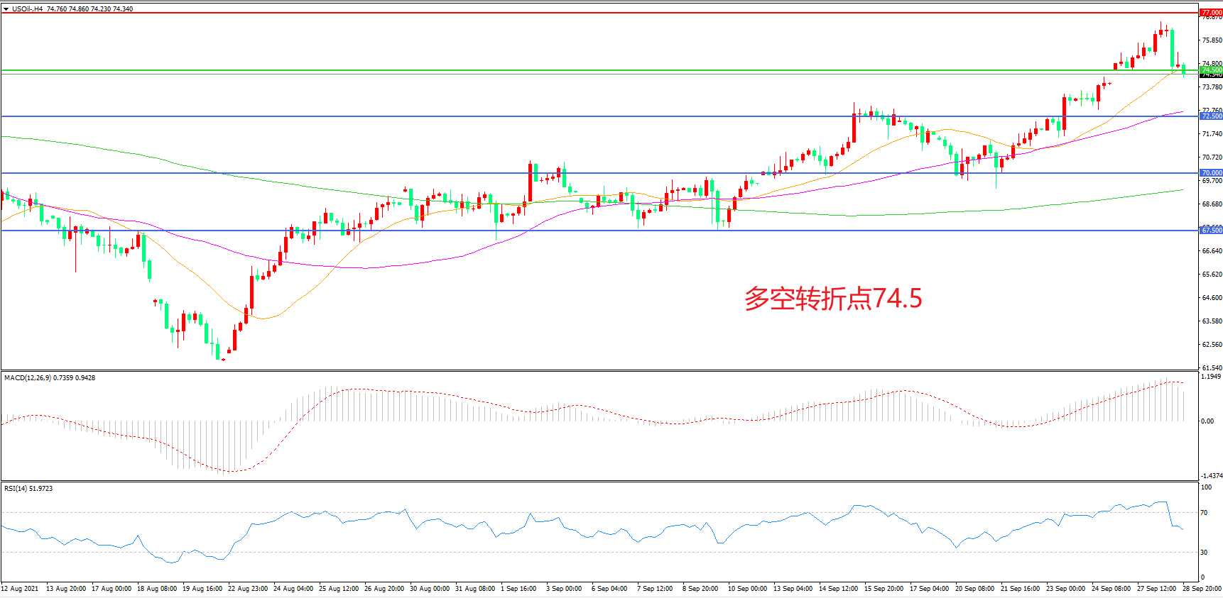 多空转折点:74.50