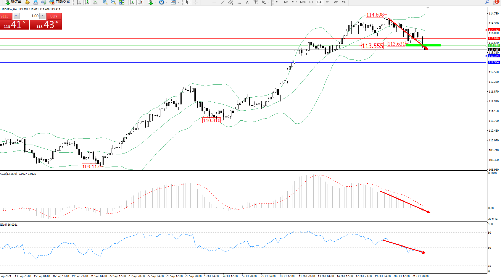 支撑位:113.174、112.934
