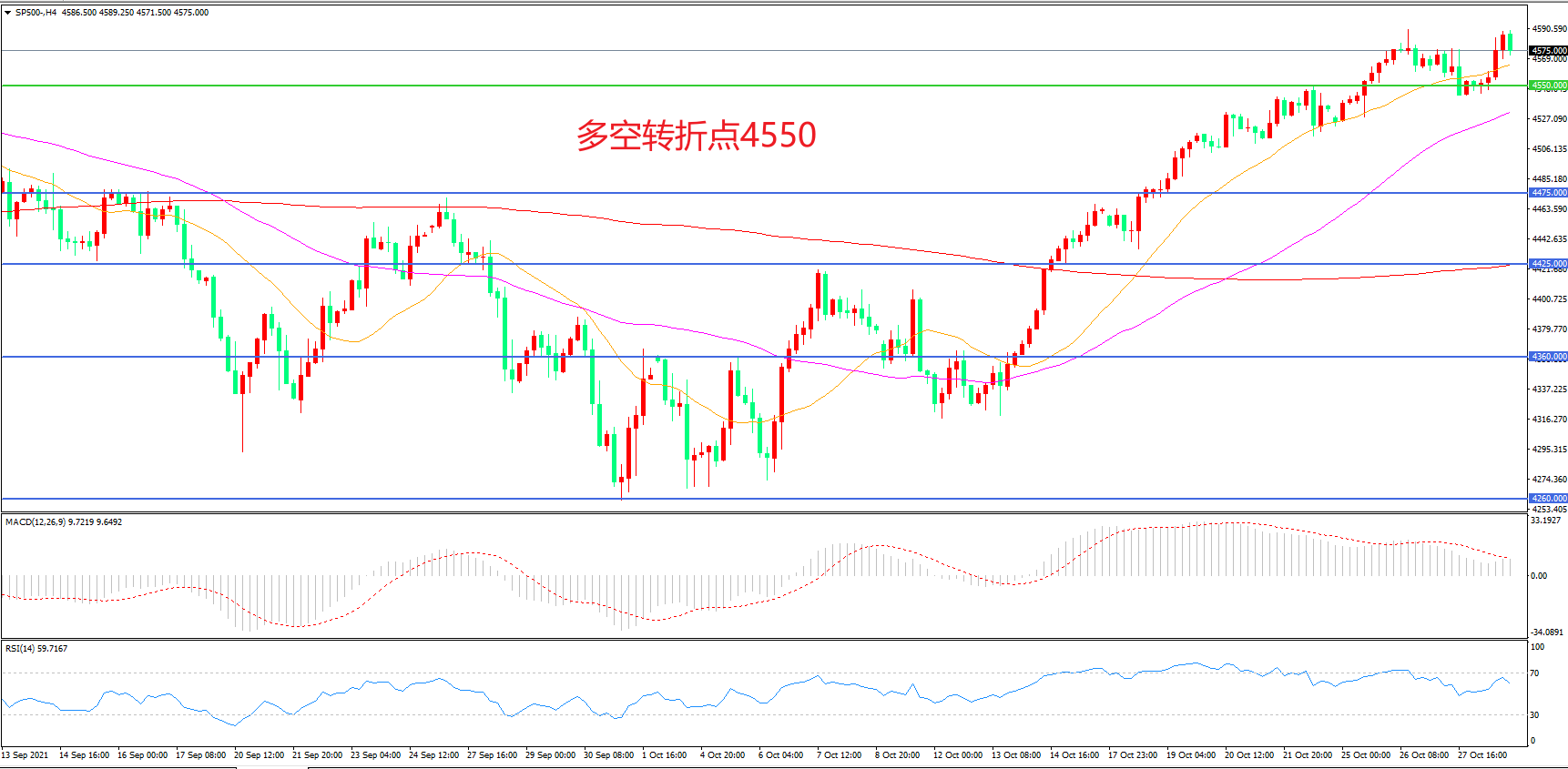 多空转折点:4550.00