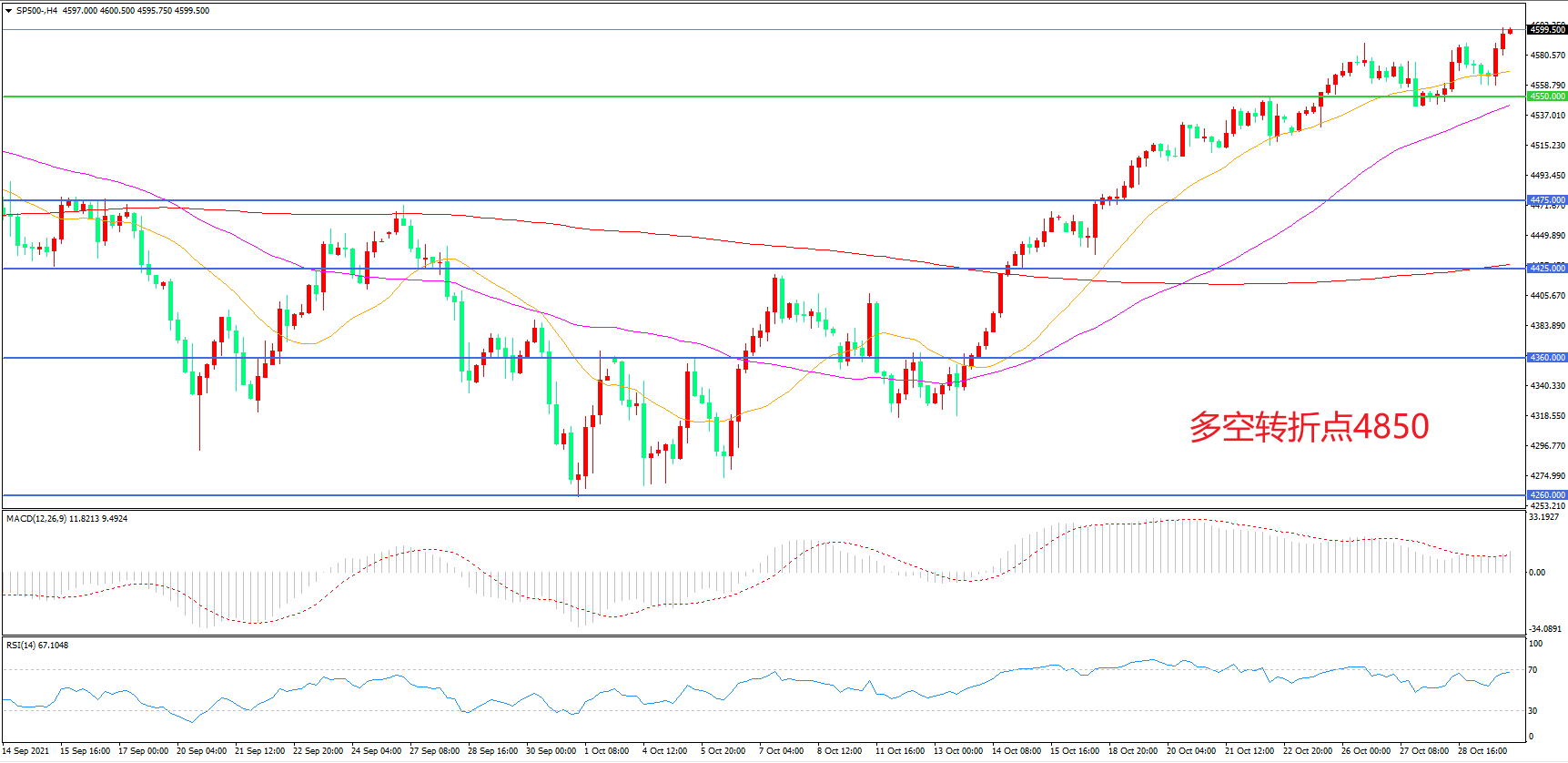 多空转折点:4550.00