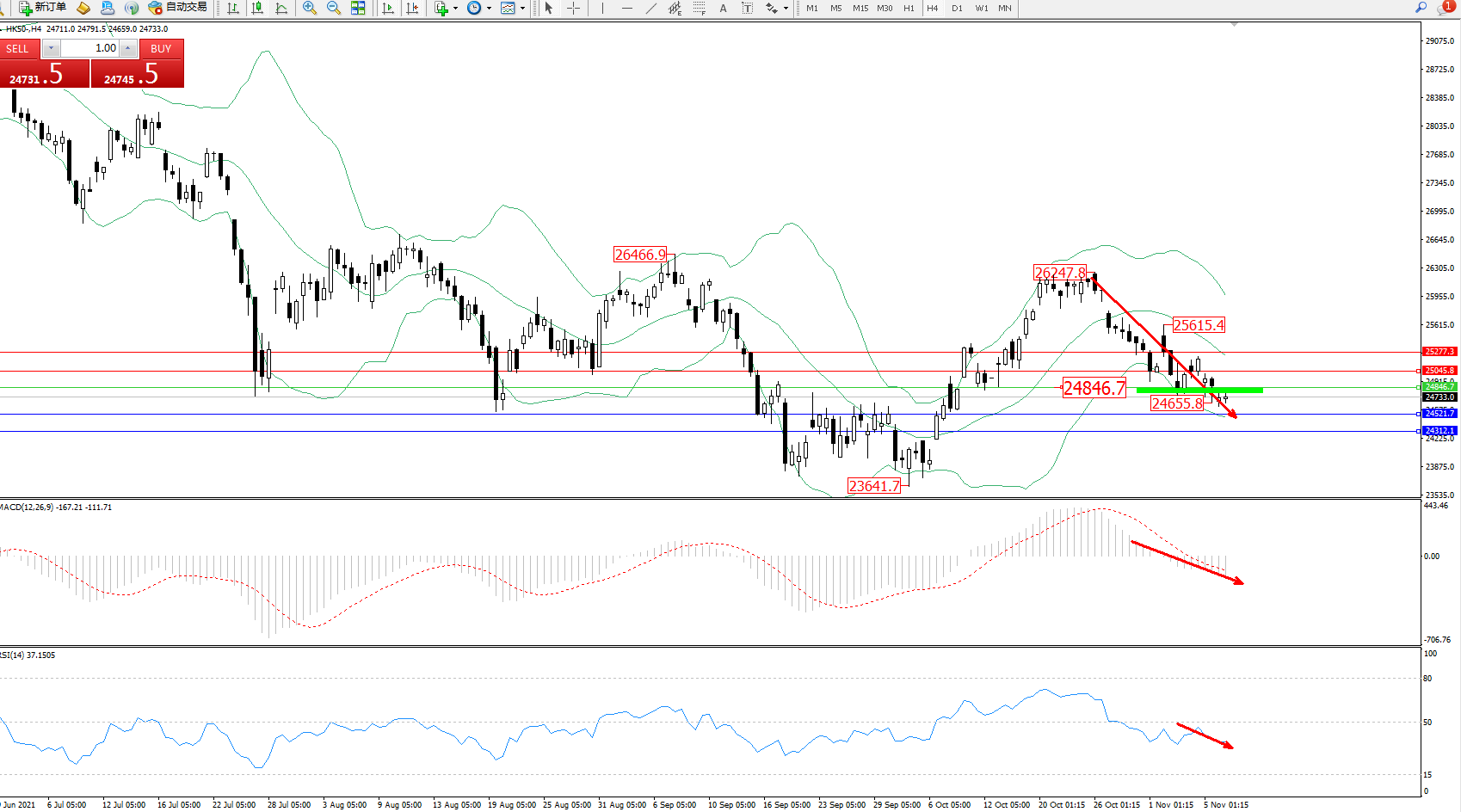 交易策略:24846下方看跌,目标24521、24312