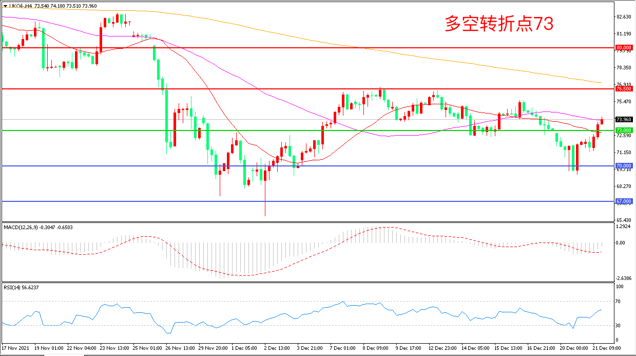 交易策略:在73.00之上看涨,目标76.50 80.00