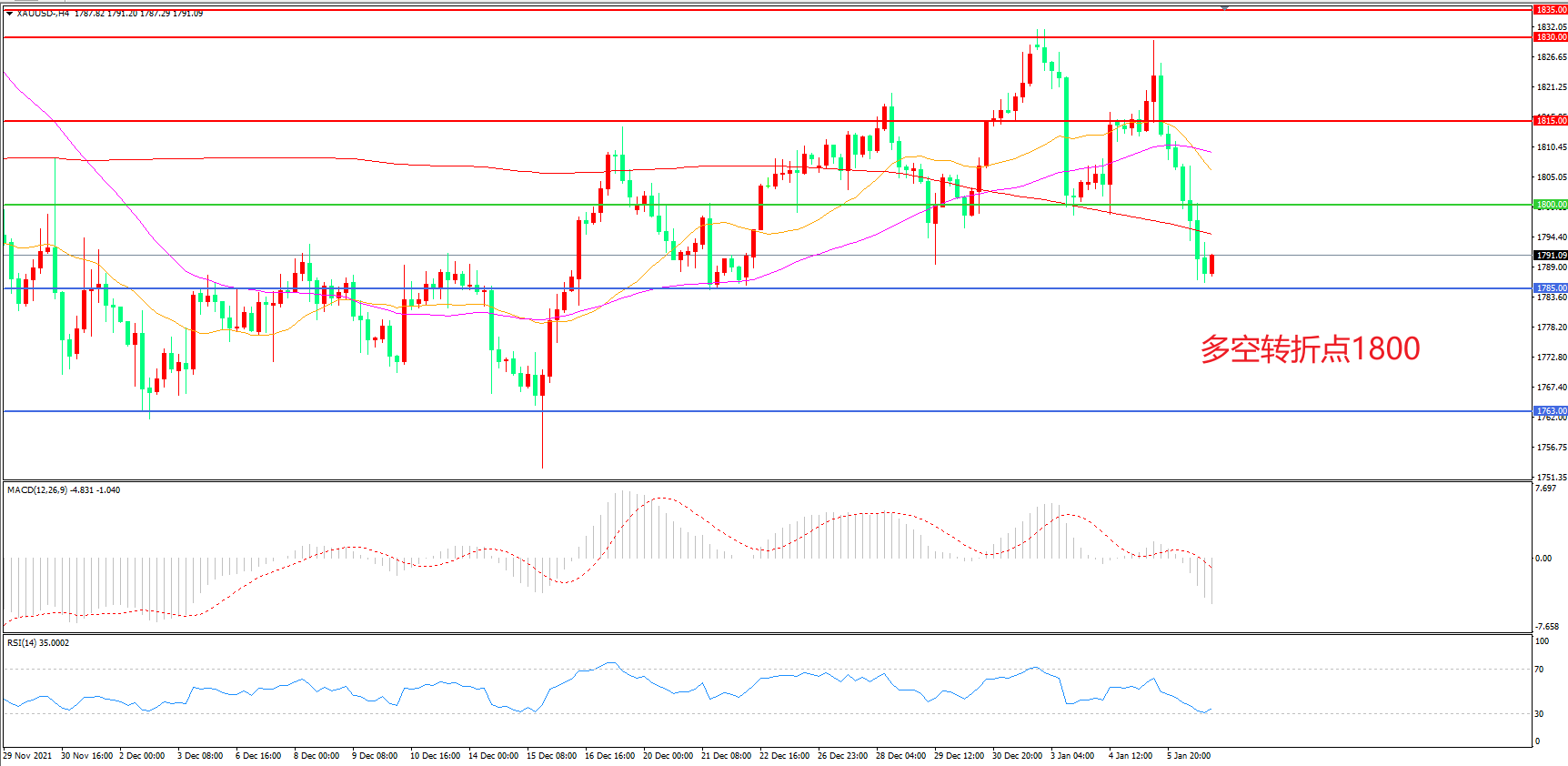交易策略:在1800.00之下看跌,目标1785.00 1763.00