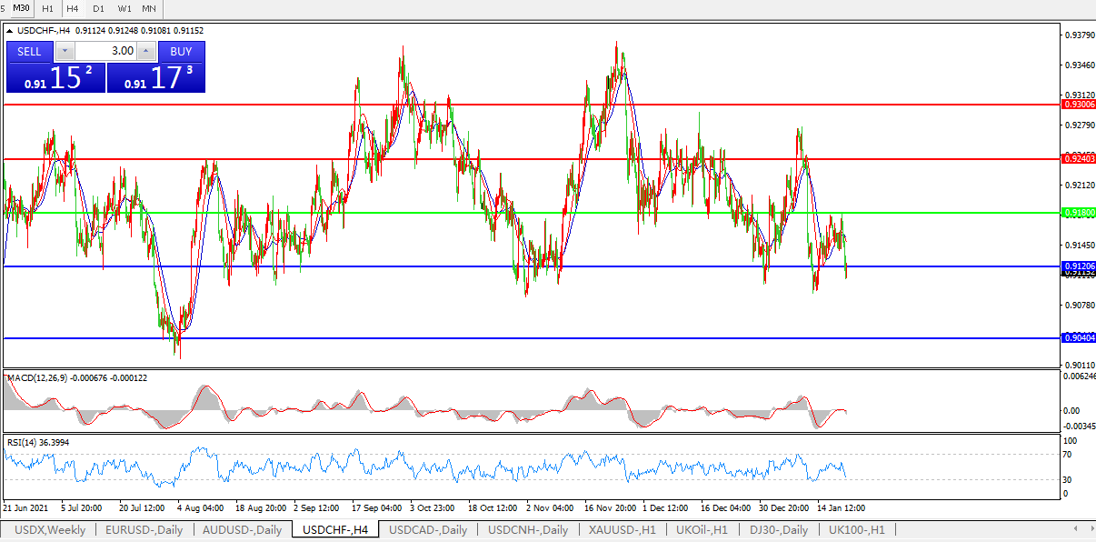 交易策略:0.9180下方看跌,目标0.9120、0.9040