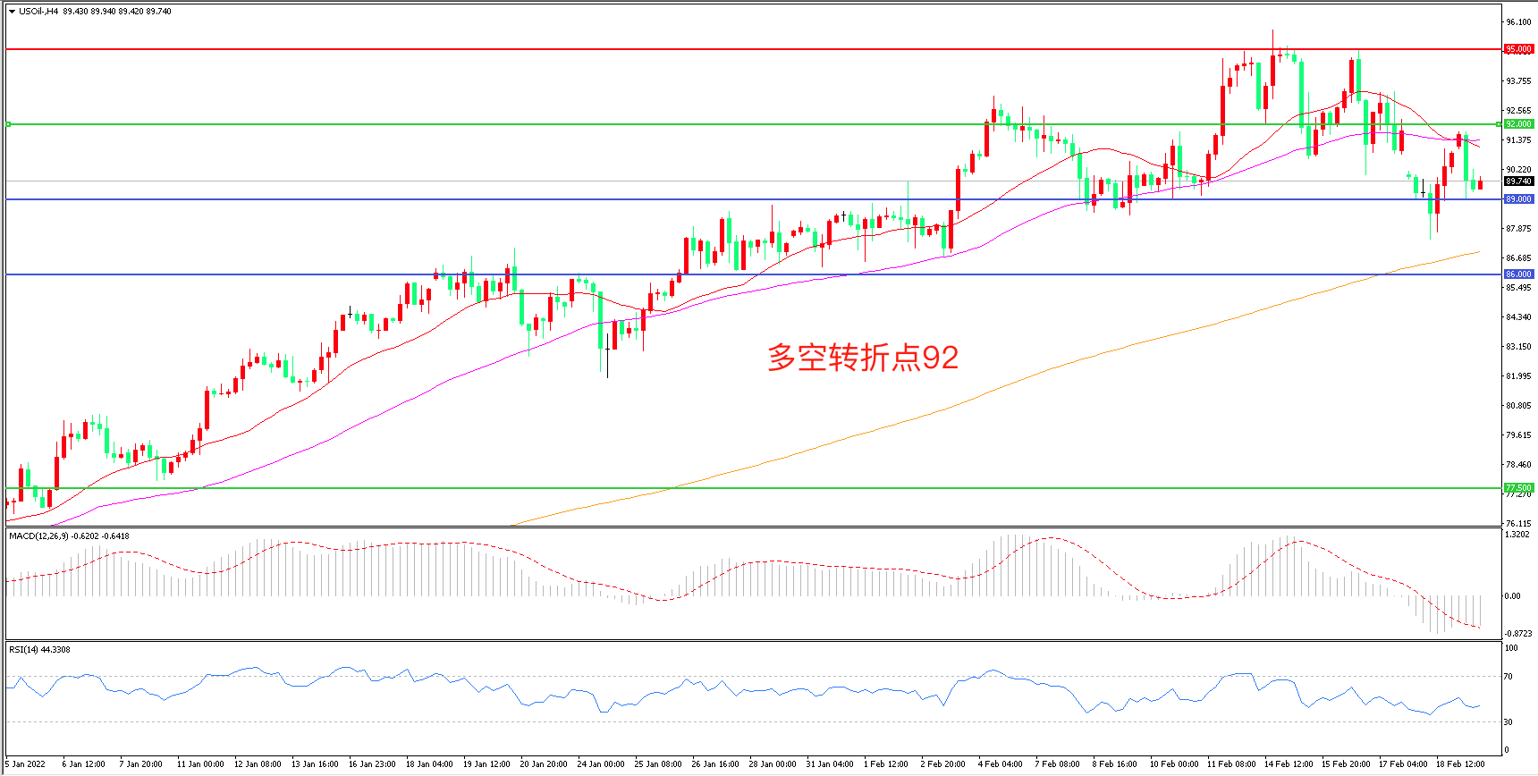 交易策略:在92.00之下看跌,目标89.00        86.00