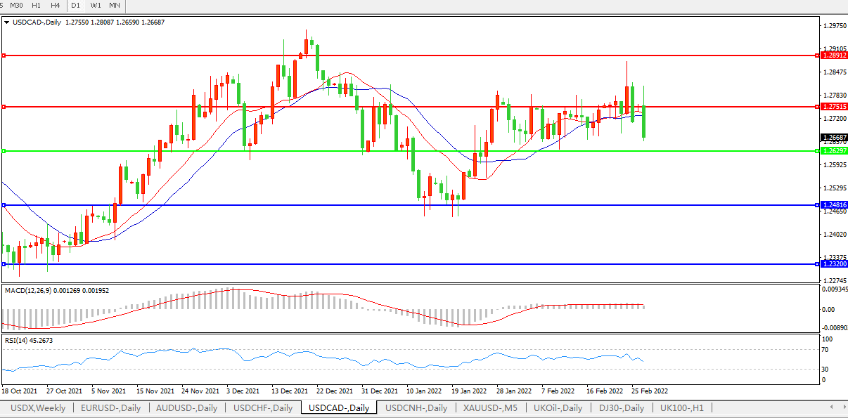 美元兑加元USDCAD 日线图: