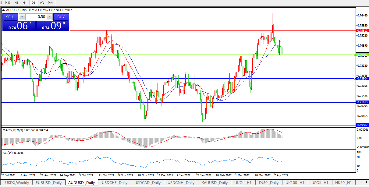 交易策略:0.7400上方看涨,目标0.7550、0.7650