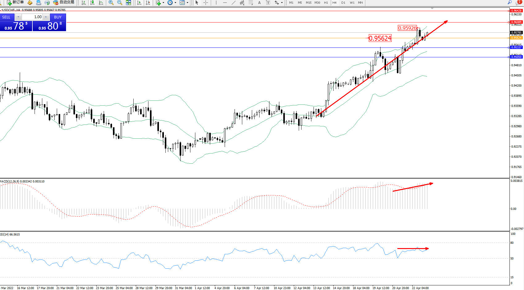 美元瑞郎USDCHF——4小时K线图显示: