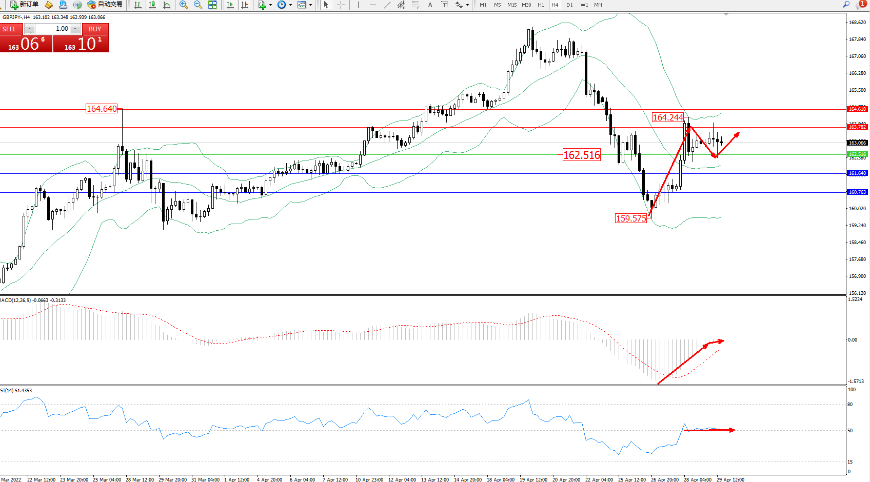 交易策略:162.516上方看涨,目标163.782、164.610