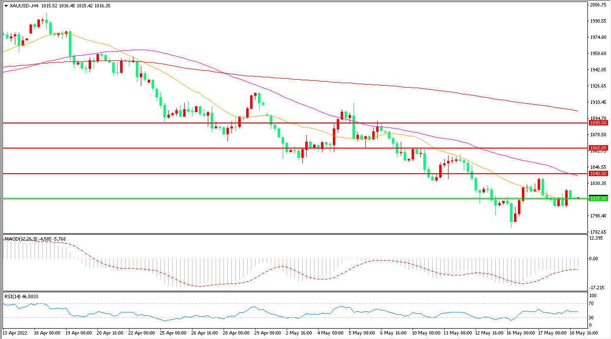 交易策略:在1815.00之下看跌,目标1790.00      1765.00