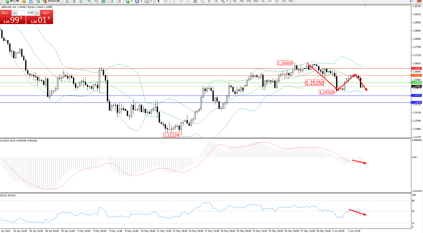 英镑美元GBPUSD ——4小时K线图显示: