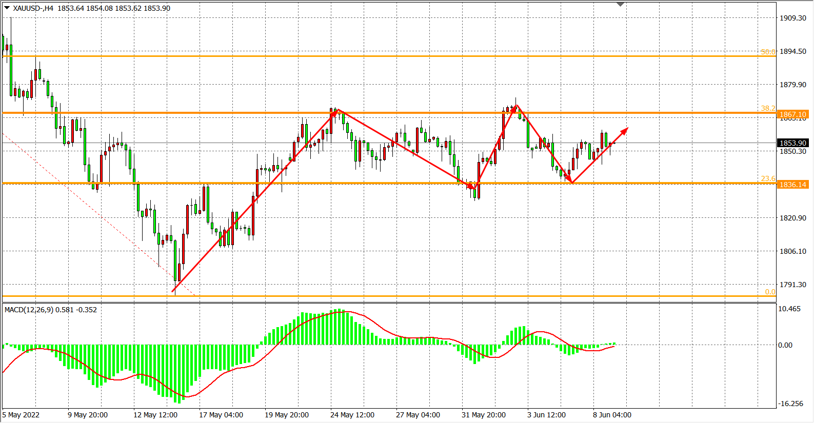 现货黄金XAU    4小时图
