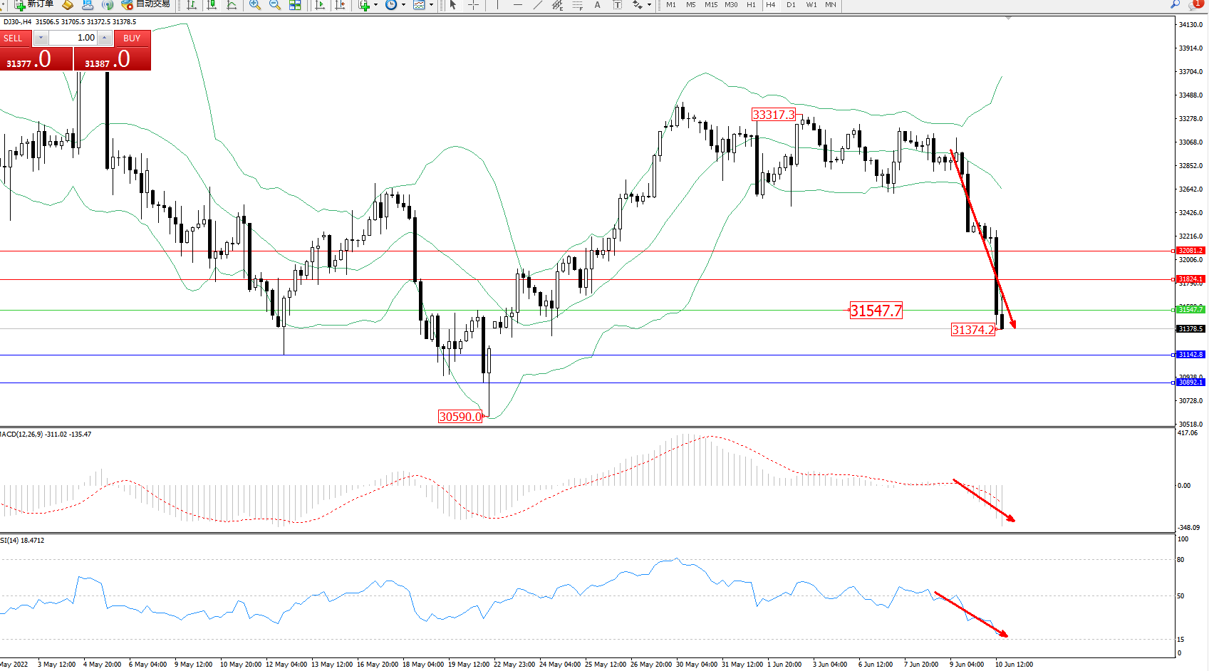 美5月通胀加速至40年高位 道指急速下挫 DJ30  SP500