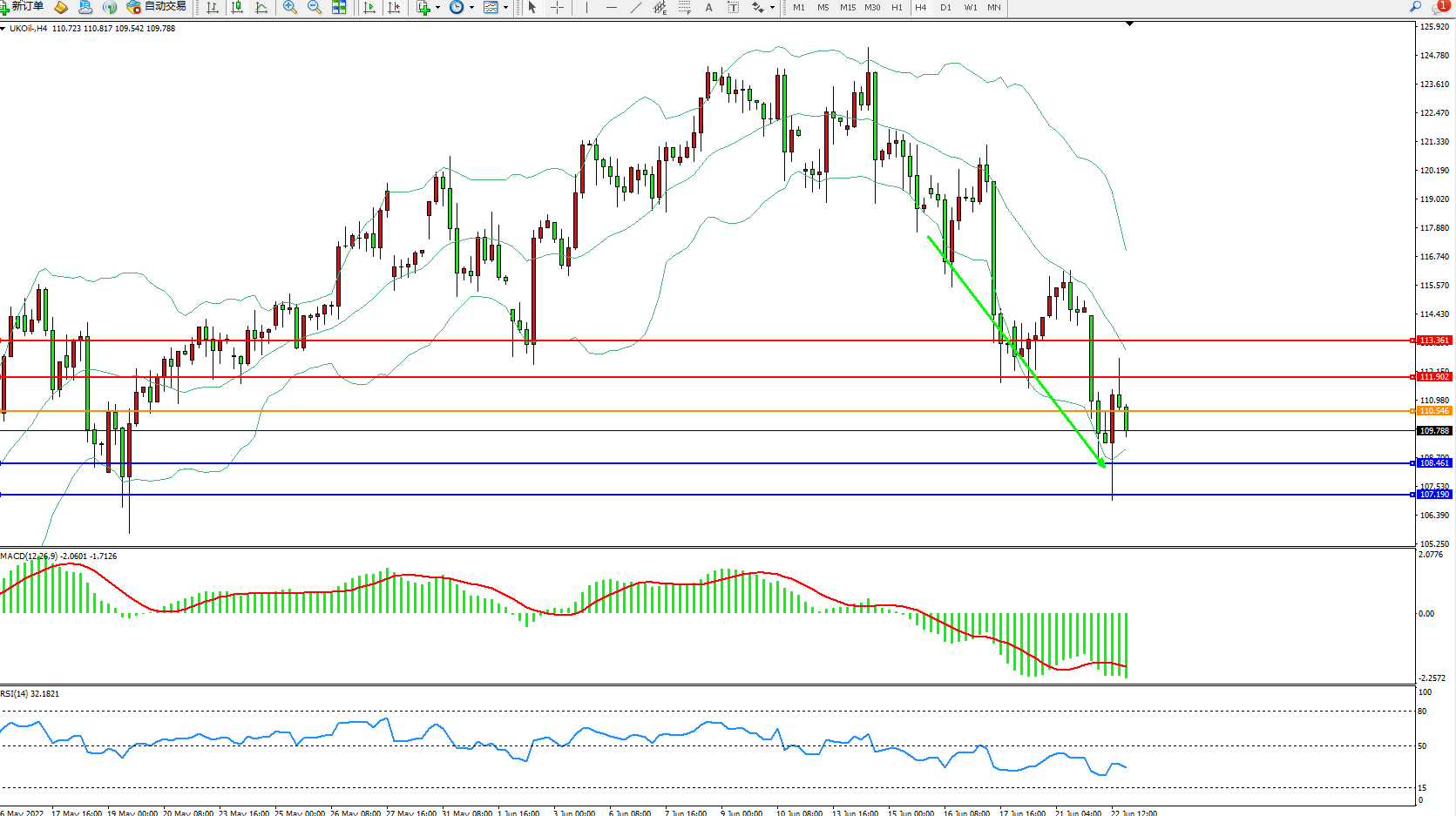 布油维持109.788附近震荡,近期由于投资者们担心各国央行收紧政策的行动将导致更大范围的经济放缓,油价的这波涨势正在迅速回撤