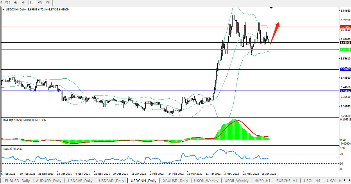 备选策略:在6.6416之下,看跌,目标价位为6.5385、6.4260。
