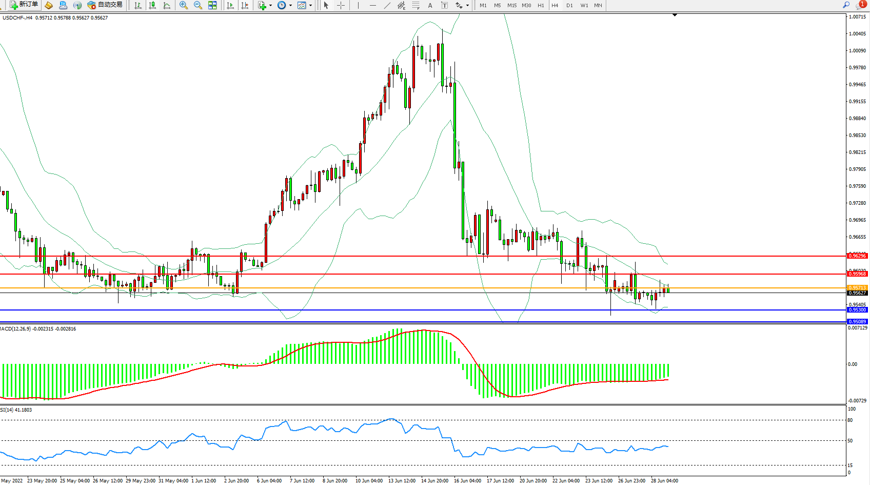 美元瑞郎USDCHF——4小时K线图显示: