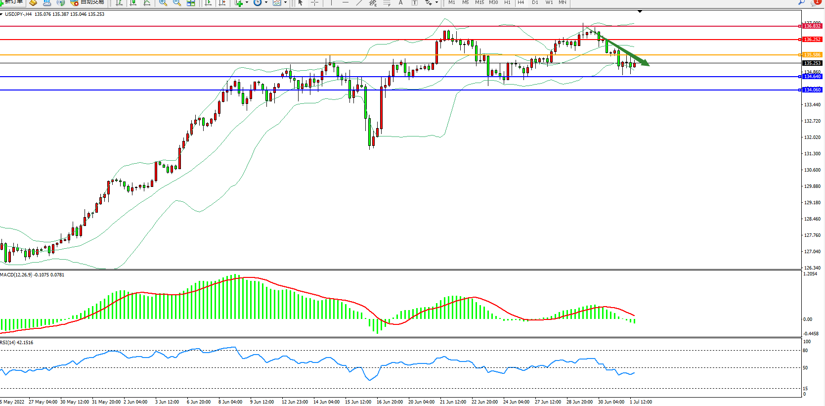 支撑位:134.640、134.060