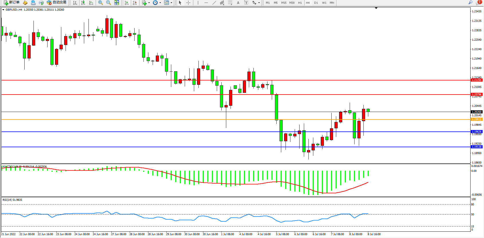 英镑美元GBPUSD ——4小时K线图显示: