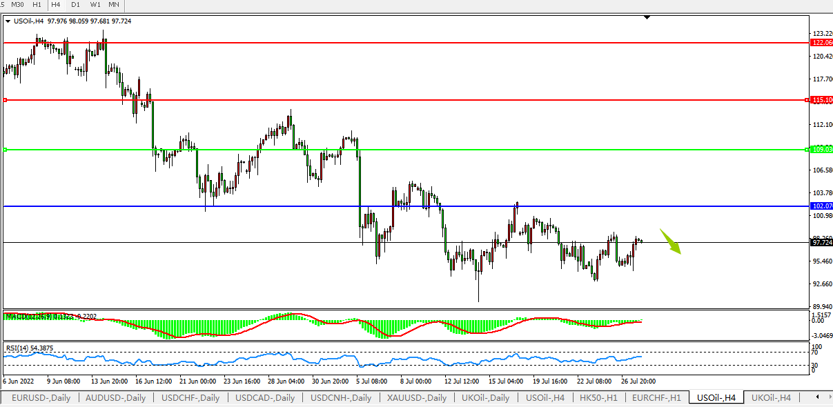 美国原油USOil 4小时图
