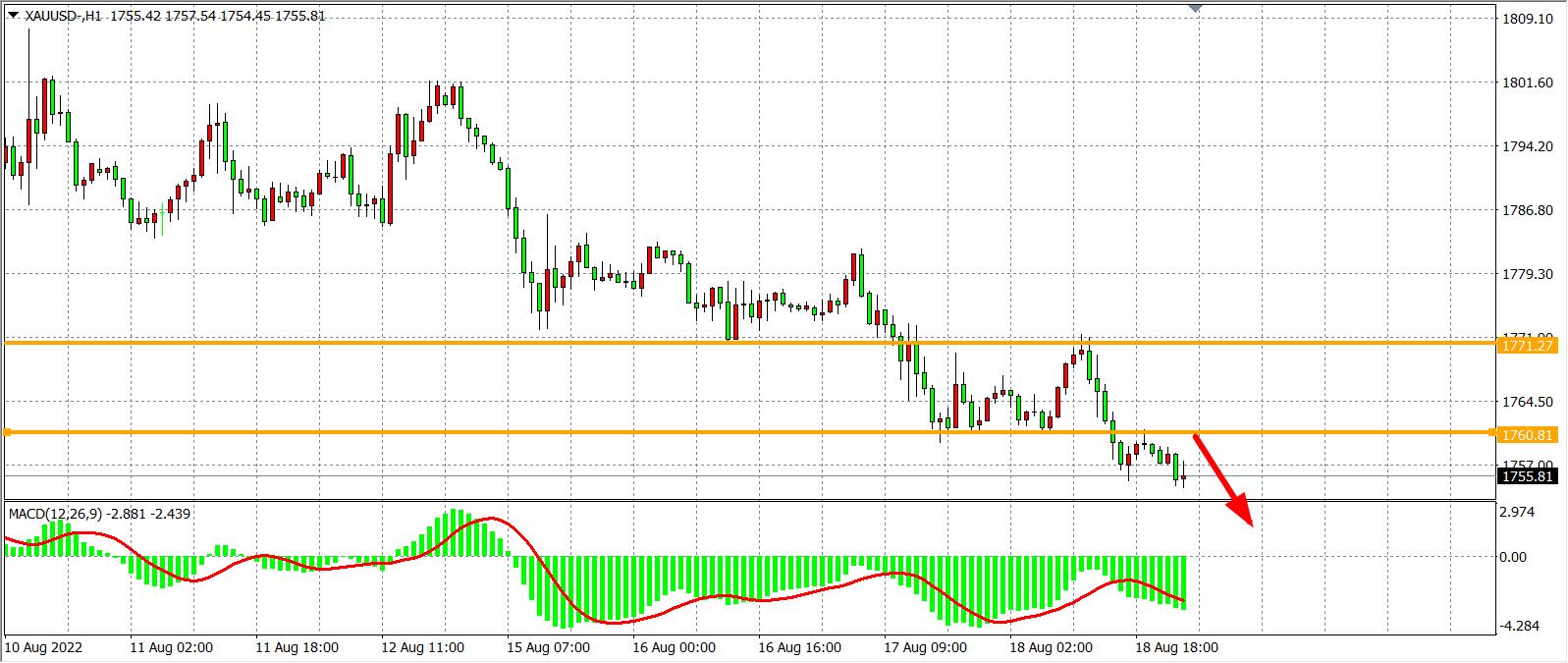 周四(8月18日)美联储多位官员继续放鹰,“鹰王”布拉德表示,他还是倾向于在9月加息75个基点,并认为美国经济还没度过通胀飙升中最严重的阶段,同时美国初请失业金人数三周以来首次下降,美指上破107大关,现货黄金于1772美元受阻后冲高回落,下破1760美元大关,收跌0.18%。