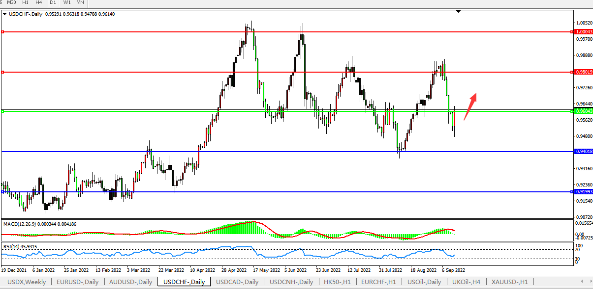 交易策略:0.9600上方看涨,目标0.9800,1.0000